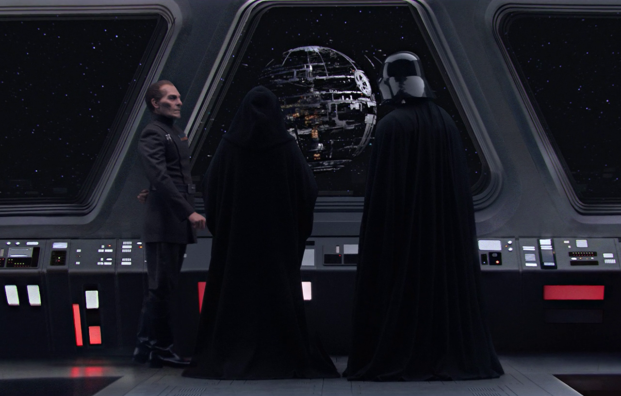 75. Palpatine makes Luke watch space battle (Return of the Jedi) - Emperor Palpatine, the Dark Lord of the Sith, makes Luke Skywalker, a budding Jedi, watch as his "Rebel friends" wage war outside the second Death Star. The dialogue is what makes this scene iconic, Palpatine throwing everything he can at Luke to get him to convert to the Dark Side.